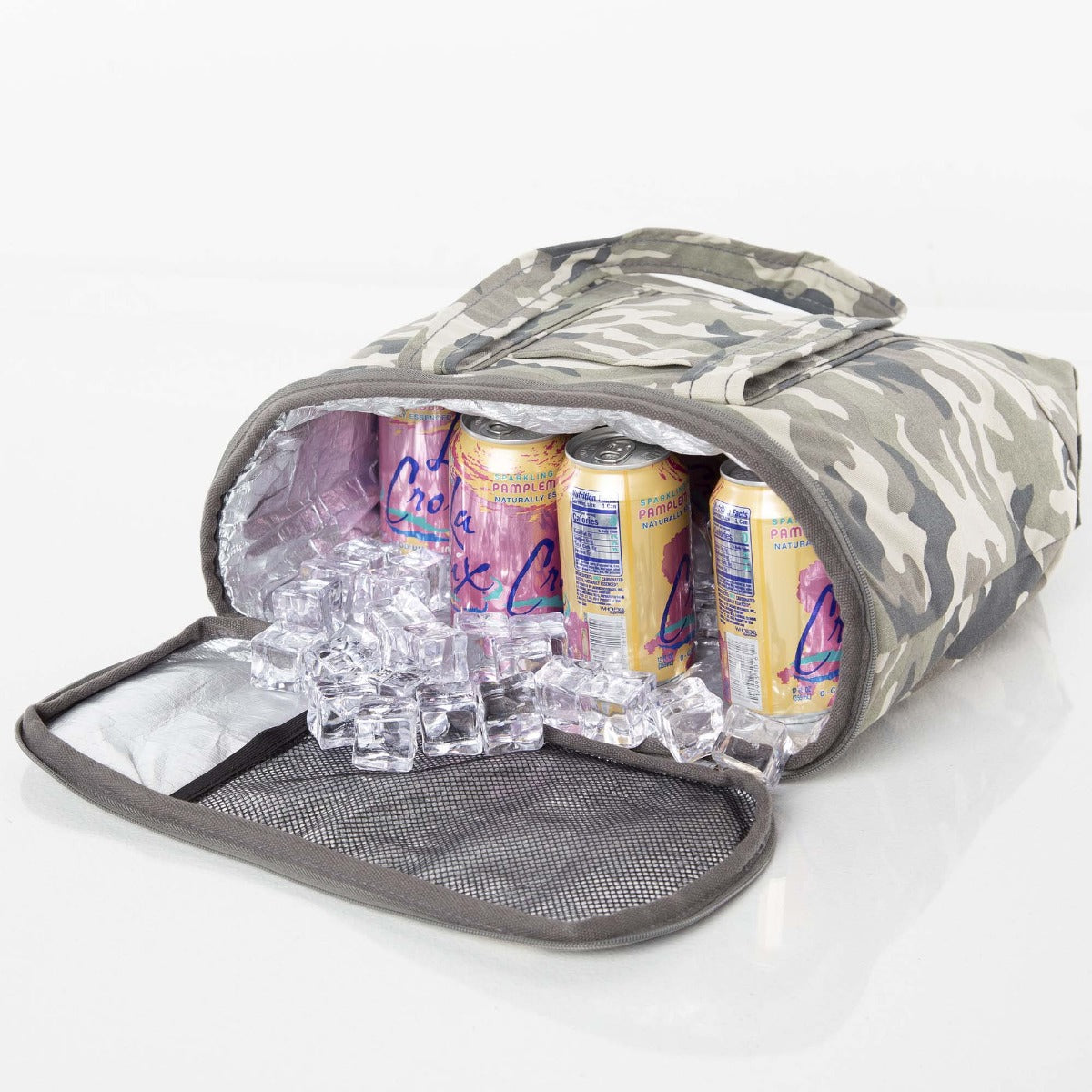 Our new lunch tote coolers are perfect for keeping food and beverages cool and fresh during a day at the beach or a picnic in the park. The Camo Large Lunch Cooler features a silver insulated lining and comes with top and side mesh pockets to hold smaller items or ice packs as needed.