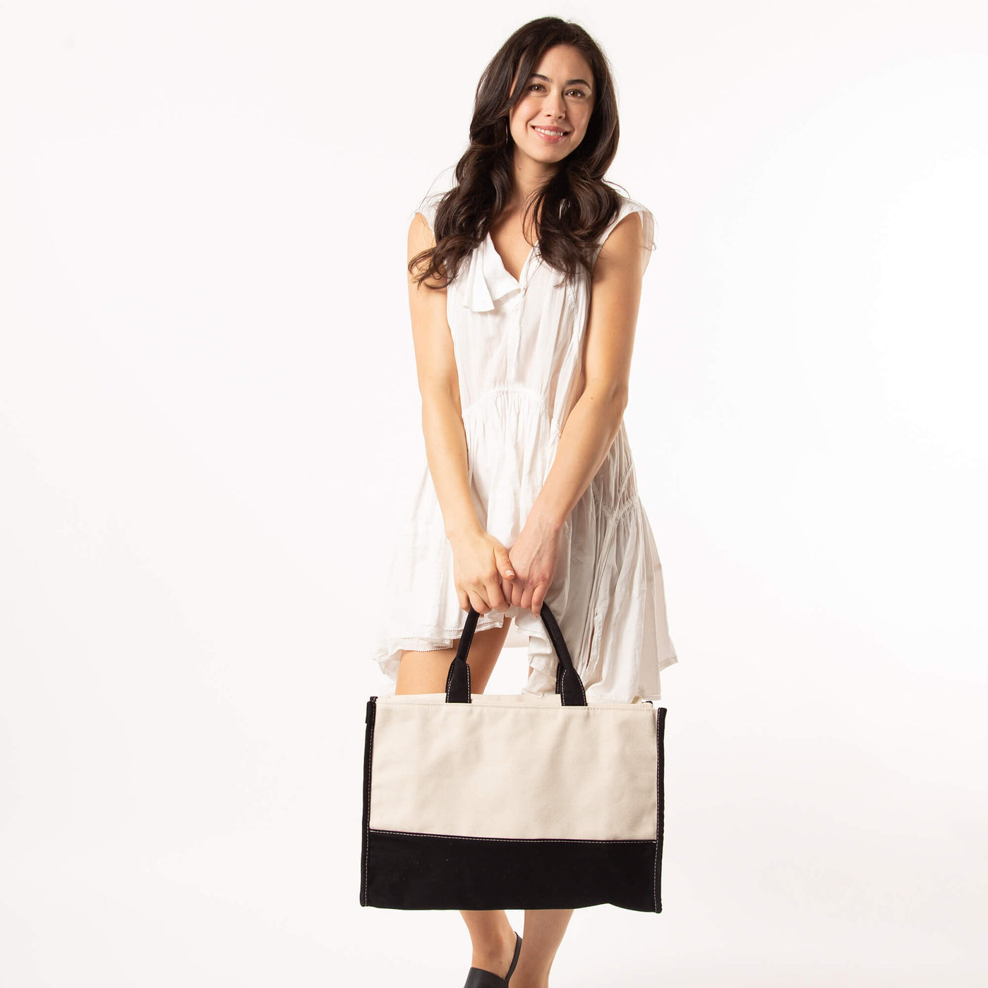 Versatile and stylish, the Black Vivera Bag is your go-to canvas tote for everyday adventures. Whether you're tackling household tasks or heading out for errands, this rectangular design adapts to your needs. The striking two-tone aesthetic—natural canvas with a jet black base and coordinating trim—makes it as visually appealing as it is practical. Durable and dependable, it's the bag that works as hard as you do.