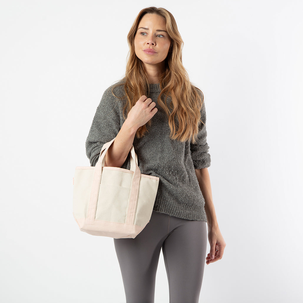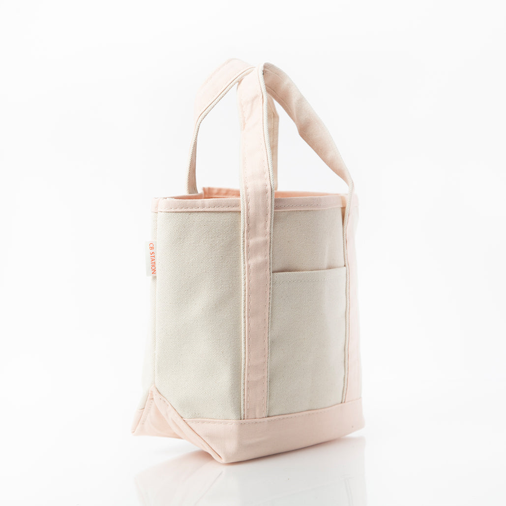 Introducing the Powder Pink Handy Open Tote! Adorable and charming, this smaller version of our Classic Tote is perfect for gifting or treating yourself. Our Handy Open Tote is a quick, grab-and-go bag perfect for everyday use. Made from natural heavyweight canvas with powder pink trim, it includes an open top and outer pocket for easy access.